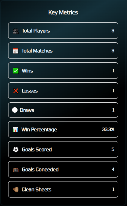 Manage your squad, track stats, add matches, results, and keep everyone in sync
